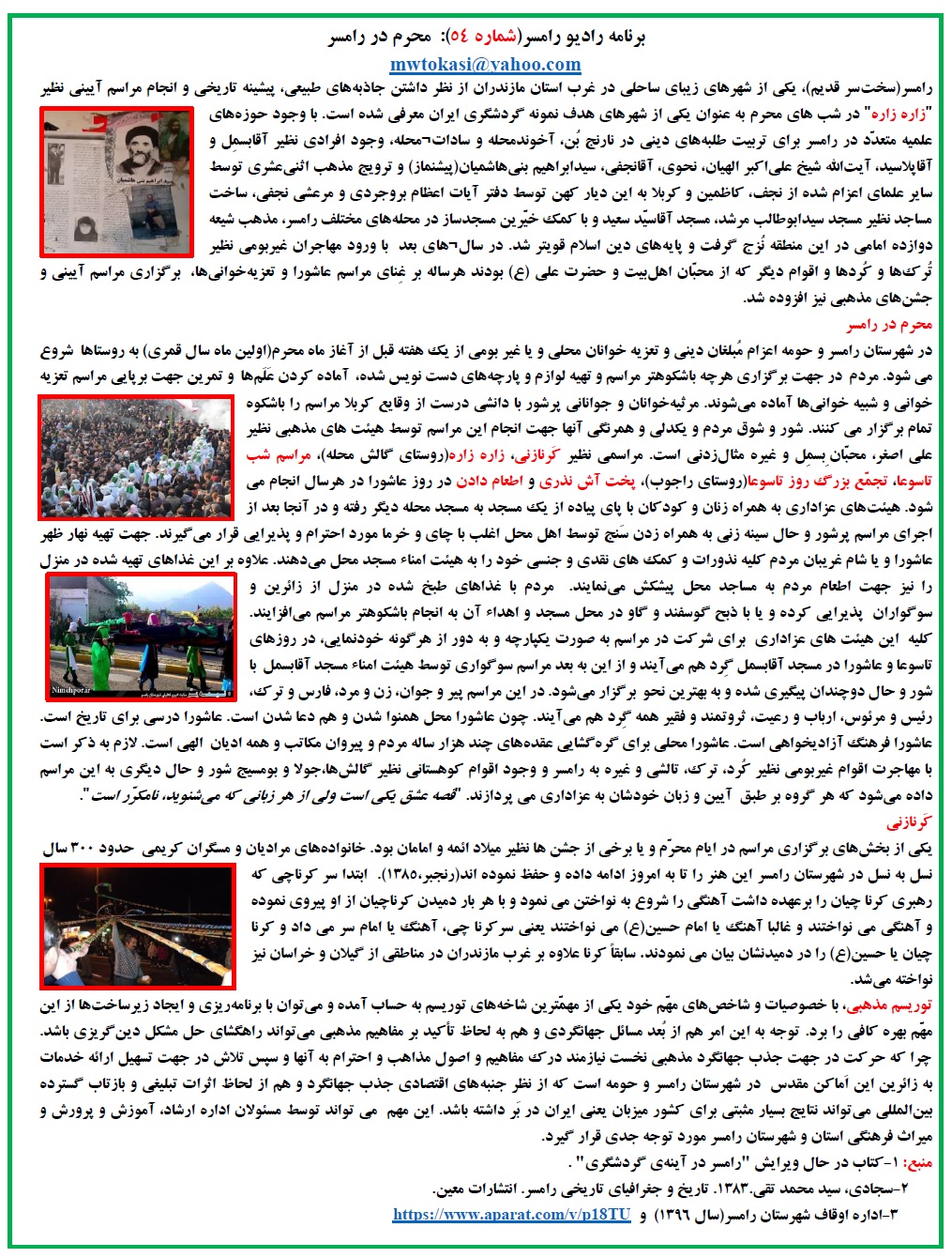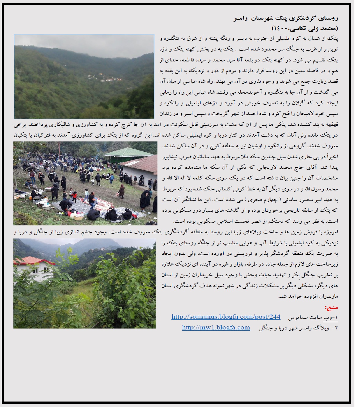 منبع: کتاب در حال ویرایش" رامسر در آینه گردشگری" اثر نگارنده.